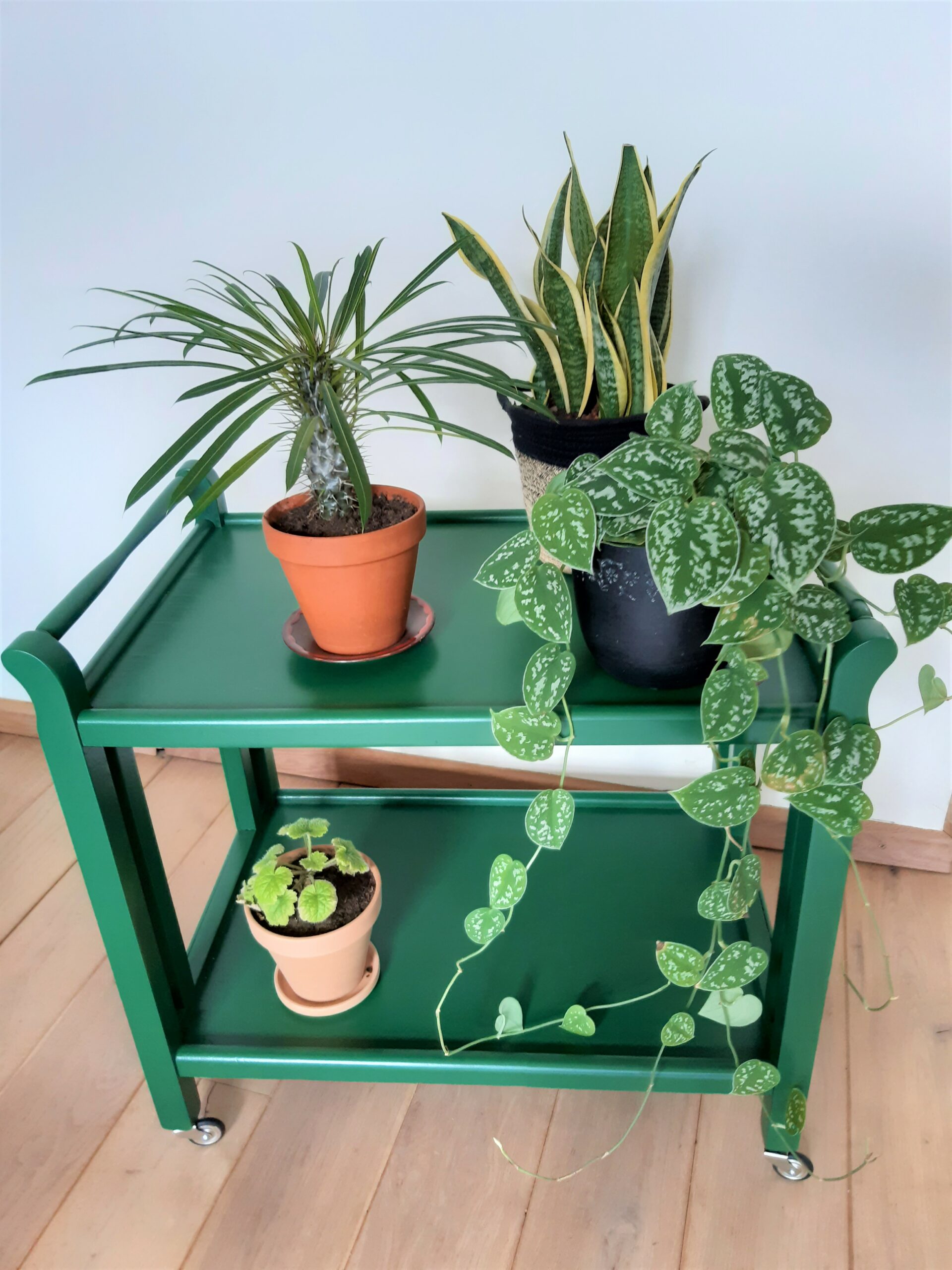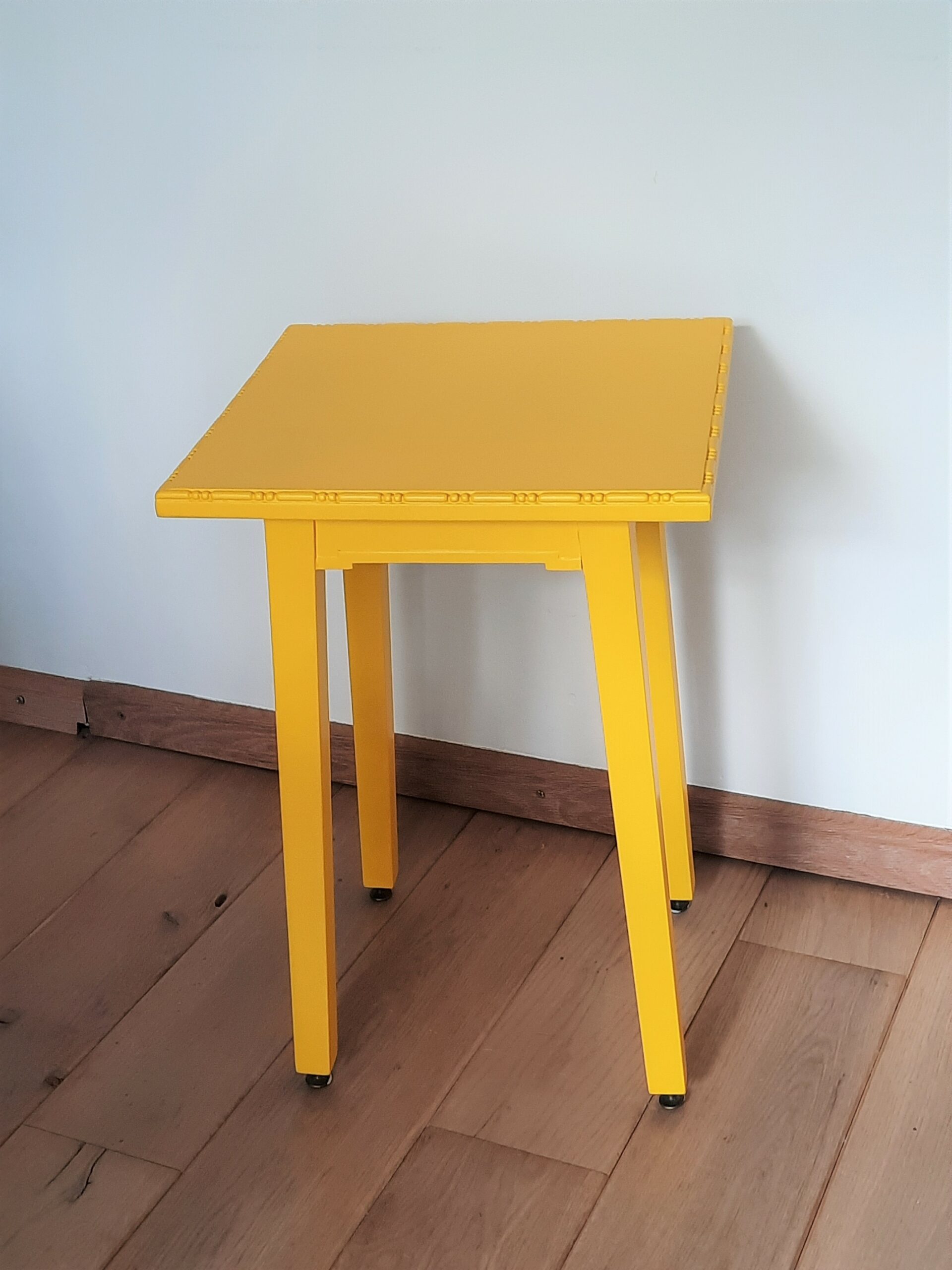 Dit vintage tafeltje met driekhoekig blad heb ik opgeknapt en geschilderd in de kleur Stroop van Histor.